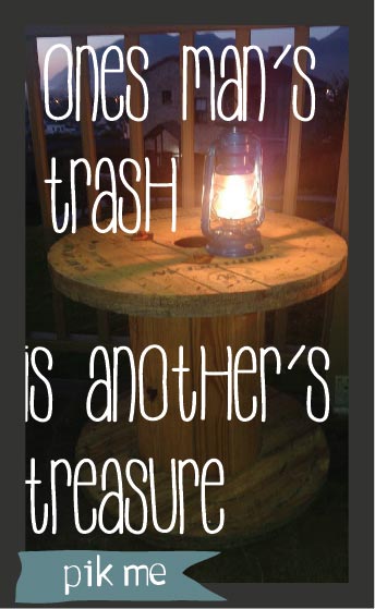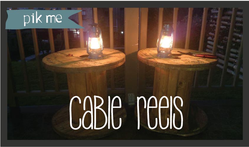This led us to think outside the box and we decided to start looking for Cable Reels. My husband went to a hardware store close to his work to find out if we they could help him with some and managed to get 3 for free!! (totally ticked the budget box and they were very much to my liking). We had to do a little work on them to make them work as tables. Below are some hints on how to make Cable Reels useful: